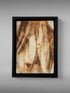 Handmade A4 porcelain slab wall mount, saggar-fired to capture the alchemy of fire, minerals, and organic matter. Framed in black wood, these works preserve painterly landscapes formed through combustion and fuming—where minerals, metals, and plants imprint their memory into porcelain.