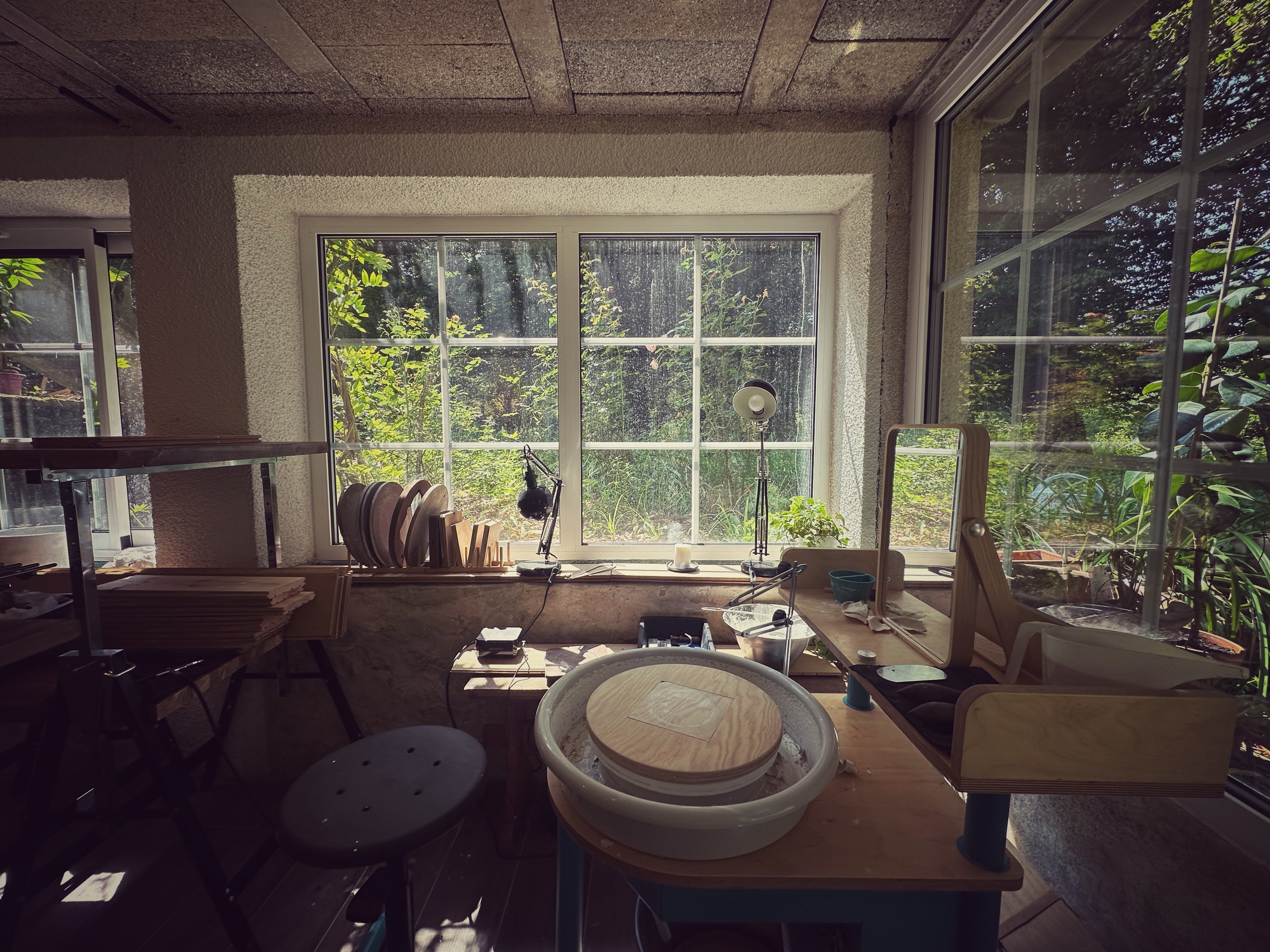 In my studio, I incorporate both hand-building and wheel-throwing techniques, guided by a sense of connection to the earth and its cycles. Each piece begins with clay drawn from the ground, shaped, dried, and transformed by fire. In my saggar firings, I enclose forms with leaves, flowers, and minerals gathered after their season has passed, allowing fire to inscribe its own story on the surface.