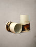 The interiors are glazed with a transparent satin glaze, allowing them to hold water, while the exteriors remain matte and unglazed to retain the raw, fire-marked surface.